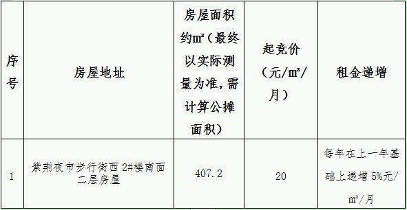 紫荆夜市1处二层房屋租赁竞拍规则