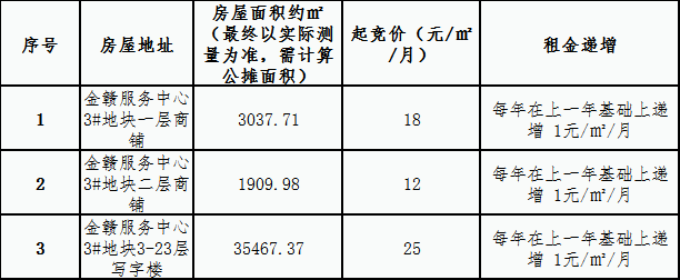 金赣服务中心 3#地块商铺、写字楼租赁竞拍公告