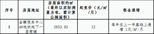 金赣服务中心 4#地块商铺租赁竞拍公告