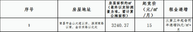 三、本次竞拍只报起竞价,房屋每间租金起竞价为: