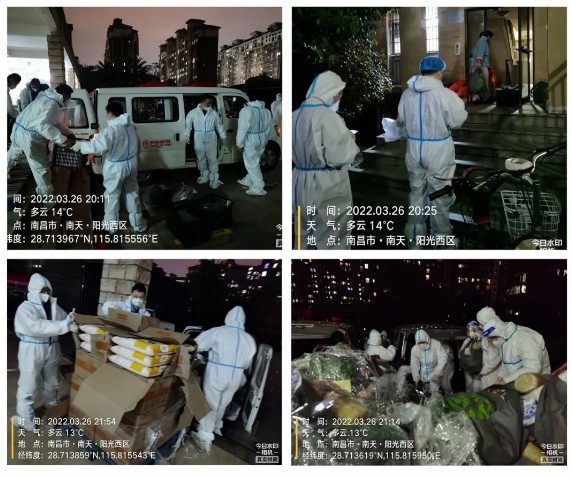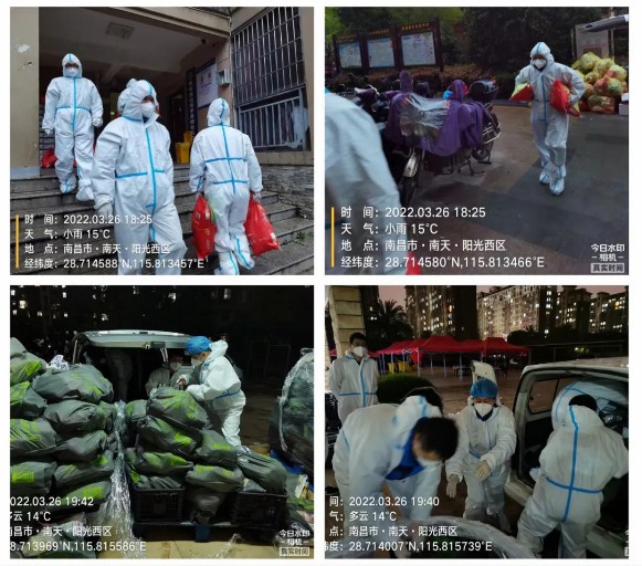 傍晚,党员突击队员们顾不上工作了一天的疲惫,继续挑灯夜战,为南天阳光二期的居民们配送生活物资。大家铆足干劲持续发力,竭力为封控居民生活物资保障工作服务好“最后一公里” 。